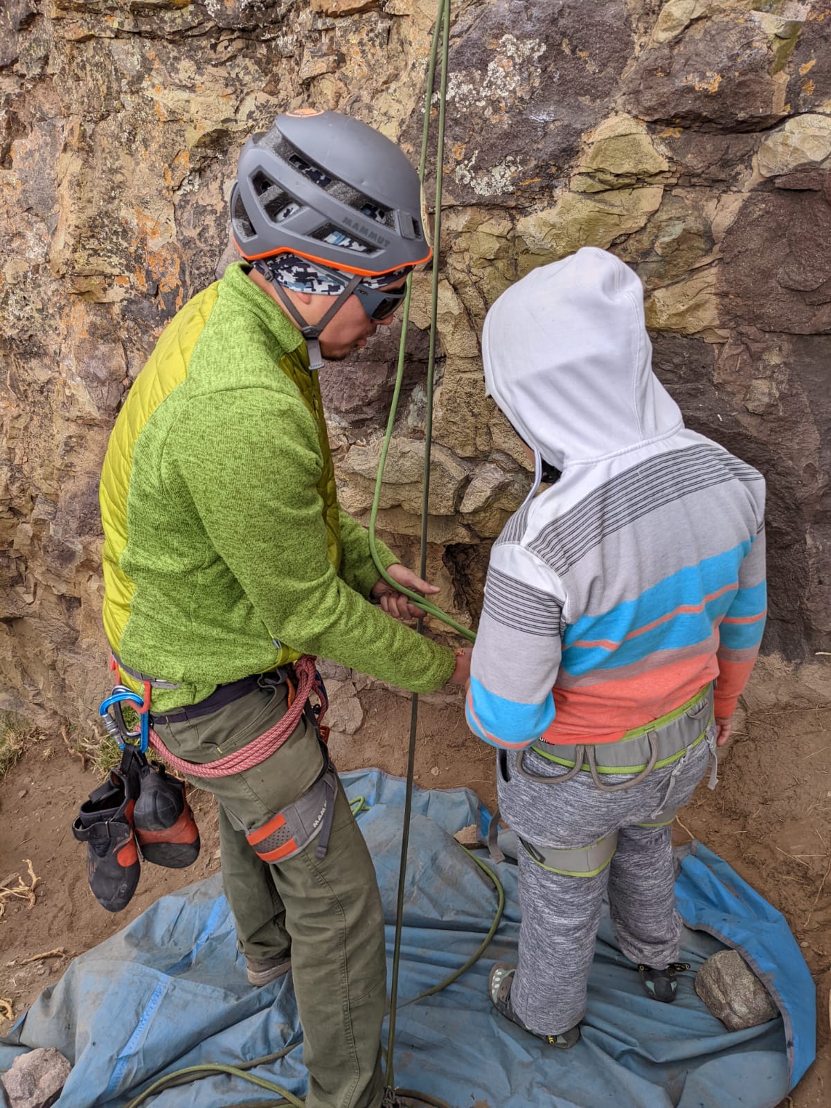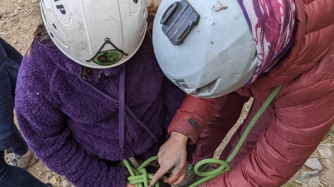 Ya se comienzan a ver los avances en la escalada de cada uno/a y ahora es tiempo de comenzar a enseñarles aspectos técnicos que les permitan, antes que termine este primer ciclo de taller, poder escalar de manera autónoma. Esta salida se aprendió como armar rutas y seguir profundizando en los nudos básicos.