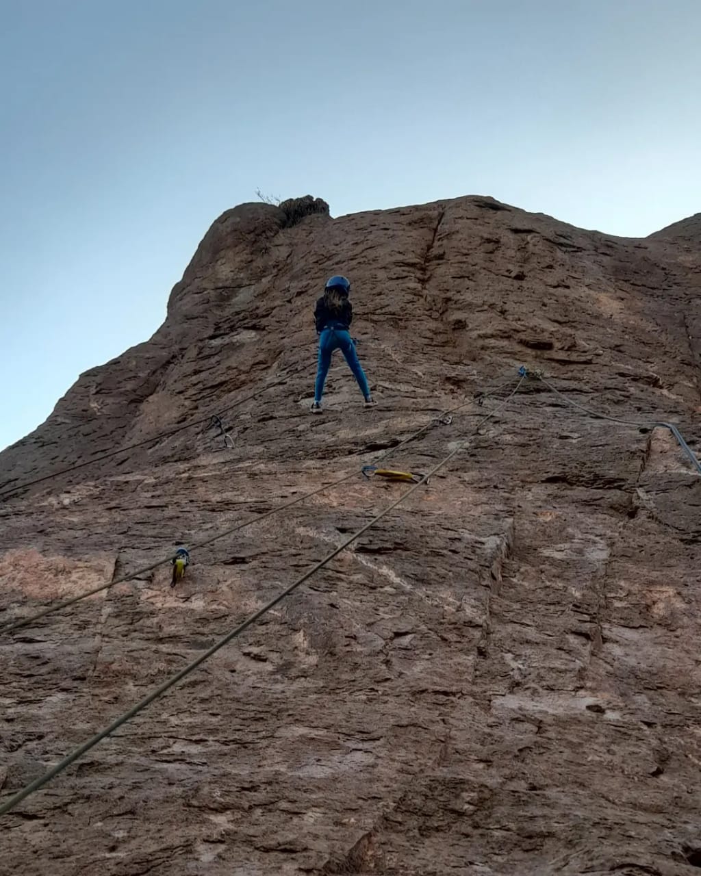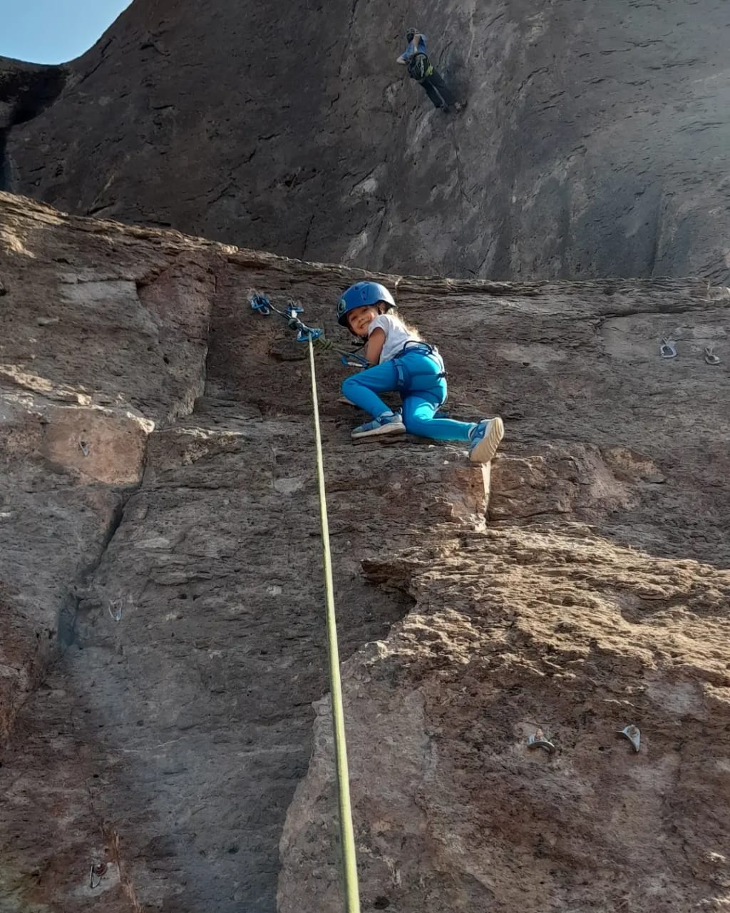 Para lo/as más grandes el objetivo fue seguir progresando en escalada deportiva a través de la escalada en rutas de mayor dificultad y clipeo de rutas, sin perder de vista la educación sobre el entorno, el cuidado de la naturaleza y las prácticas seguras y responsables.