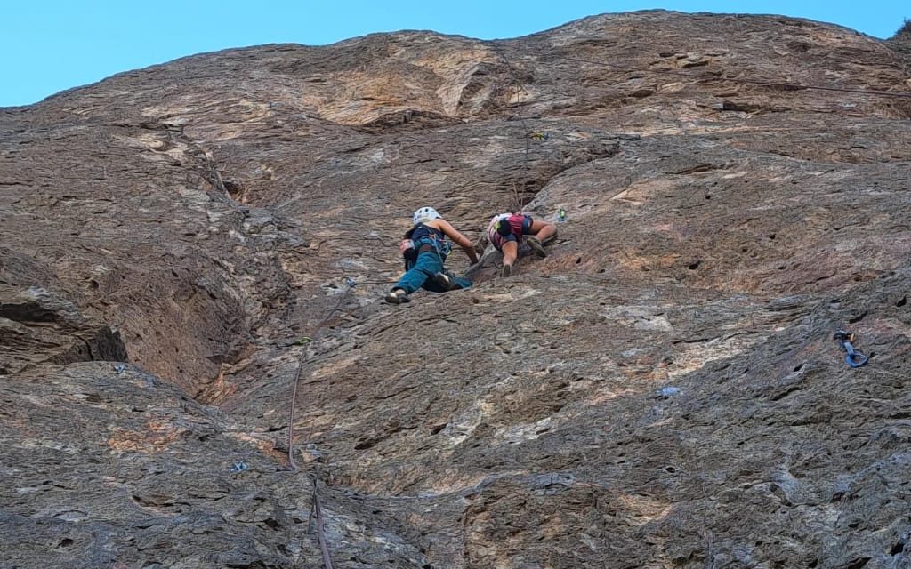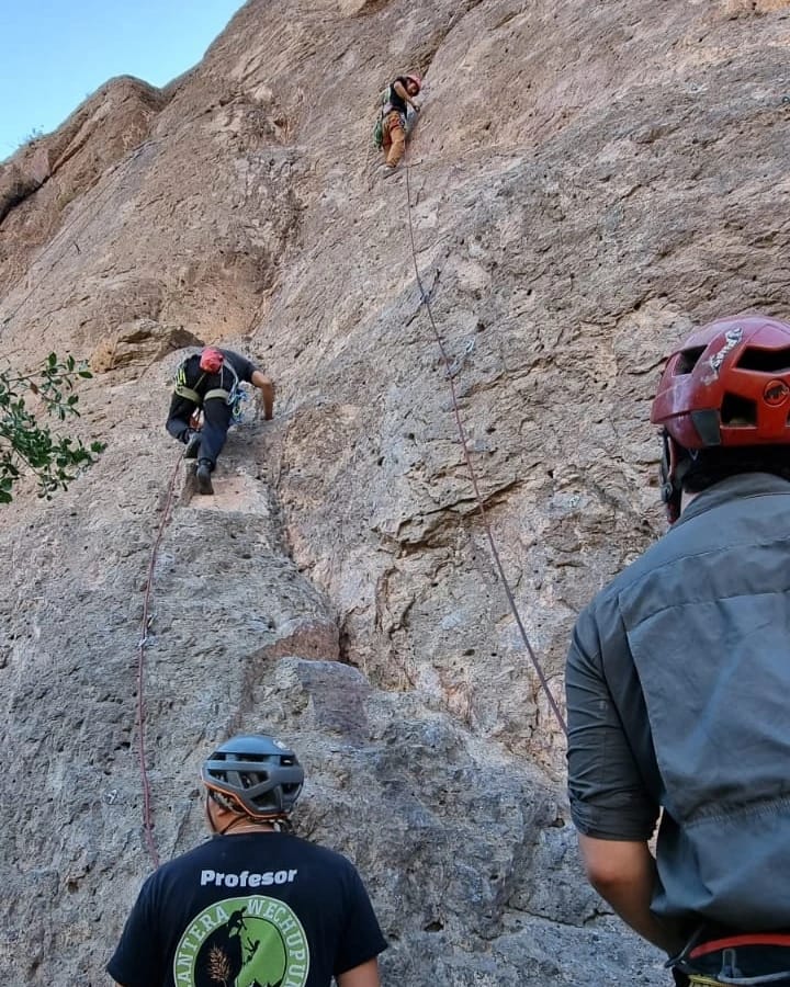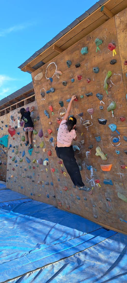 En escalada, realizamos la última salida del ciclo a la cuesta de Chacabuco donde evidenciamos importantes avances en las habilidades y autoconfianza de nuestro/as participantes ya que alguno/as han podido escalar rutas más complejas y también escalar en libre (poniendo seguros intermedios) que es la forma más exigente de escalada ya que exige mucha tranquilidad mental y autocontrol dada la posibilidad de caida.