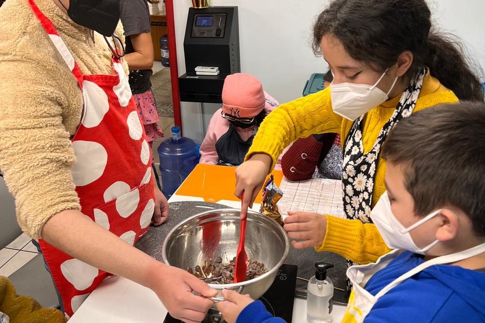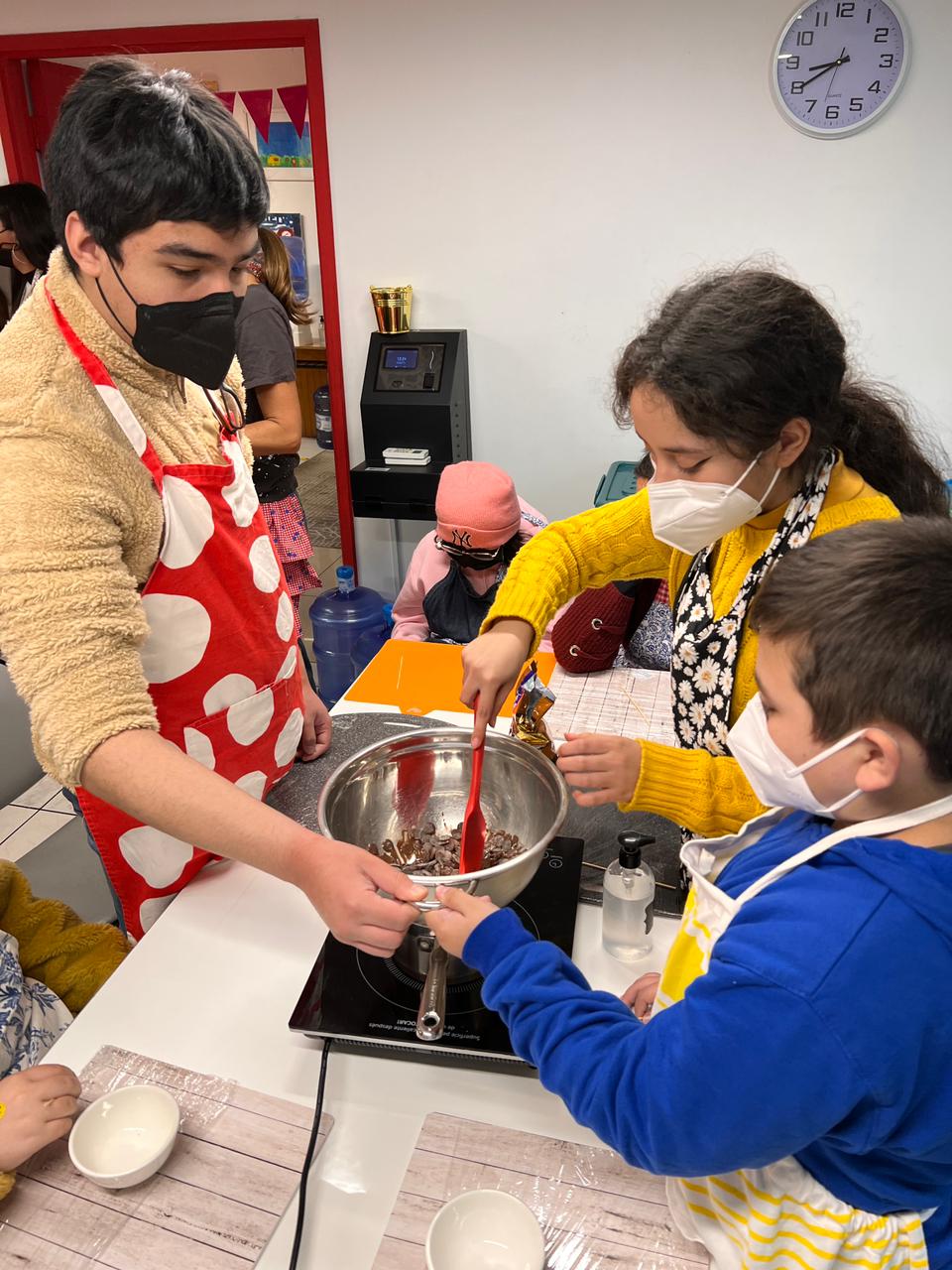 Dia bien dulce en la escuela hospitalaria con “Todo el corazón” del Hospital Calvo Mackenna. Junto a la influencer Valentina Mac-Auliffe, quien lideró el taller, Polín en la cocina, nuestra coordinadora, y nuestra voluntaria Maite, se realizó esta entretenida jornada donde los niños, niñas y jóvenes aprendieron a confeccionar, y ciertamente disfrutar, alfajores de manjar y chocolate y chocolates.