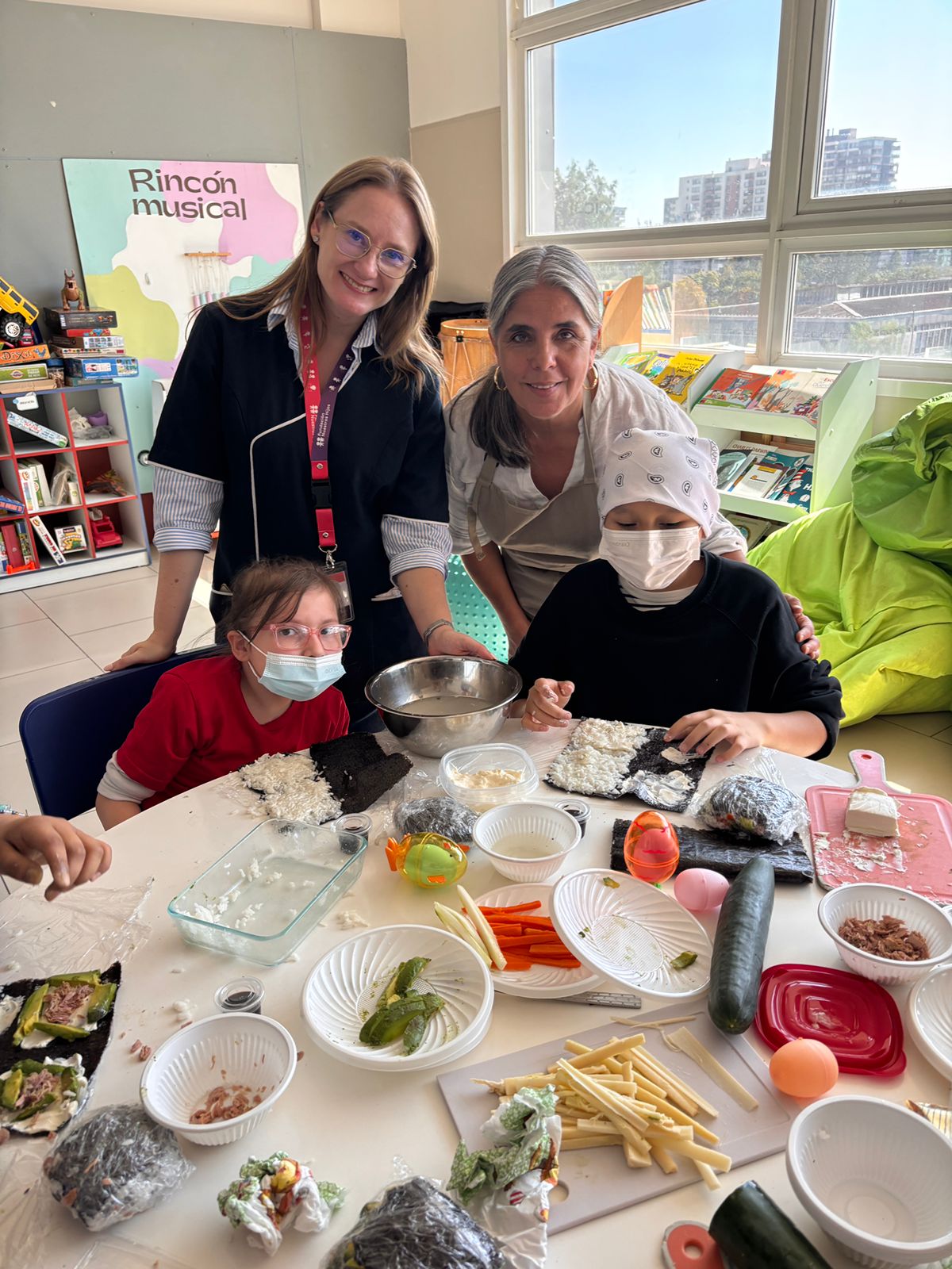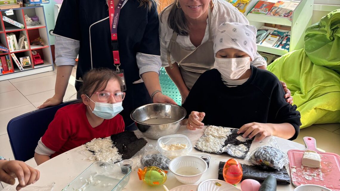 Comenzamos el ciclo 2026 en Cocina con sentido y estamos felices con el cariñoso recibimiento en la escuela hospitalaria “Con todo el corazón” del hospital Calvo Mackenna y en la escuela hospitalaria de Fundación nuestros hijos en el hospital Exequiel González. En el primero 28 participantes disfrutaron de un rico sushi y en el segundo 8 disfrutaron de unos ricos sanguchitos de arroz.