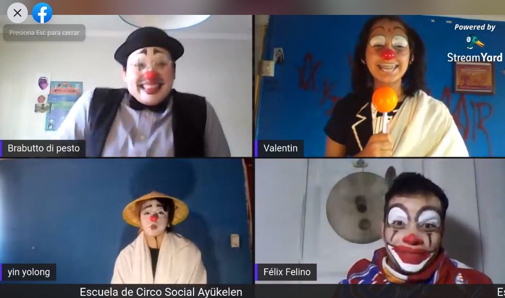 Este sábado recién pasado vivimos un momento especial ya que a pesar de la pandemia, el Circo social Ayukelen pudo realizar su primera presentación de este año y de manera completamente virtual. Utilizando los recursos tecnológicos, mucha creatividad y una gran trabajo en equipo Fundación Educándonos, la ONG Coreto circo social y los integrantes del Ayukelen nos mostraron que con convicción, trabajo y cariño se pueden lograr hermosas creaciones colectivas a pesar de la distancia.