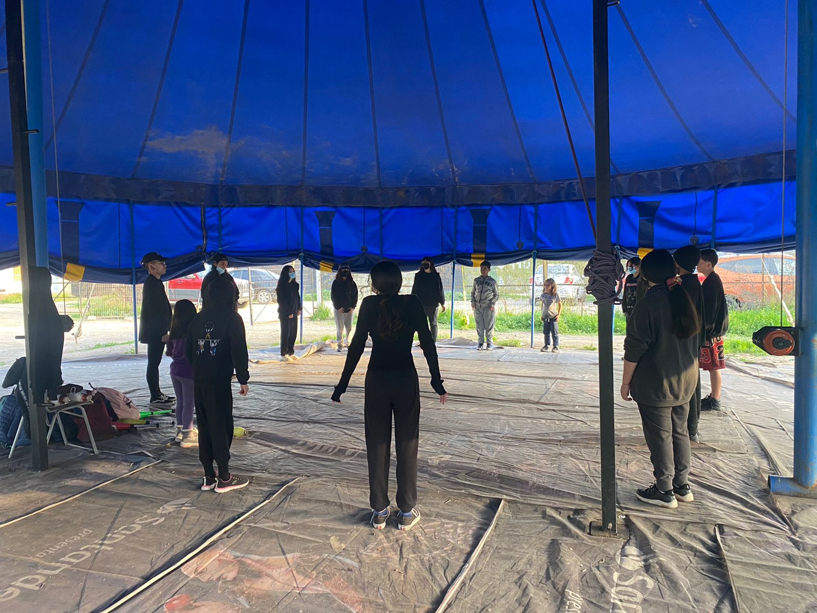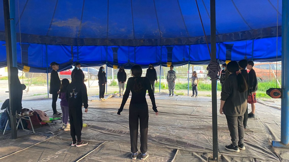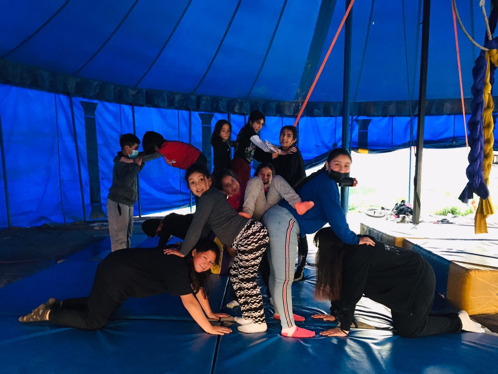 Durante las últimas semanas seguimos con el desarrollo de las técnicas del circo en nuestra querida carpa en Lo Espejo donde aprendemos malabares, acrobacia de piso y suelo con excelentes maestros y maestras.